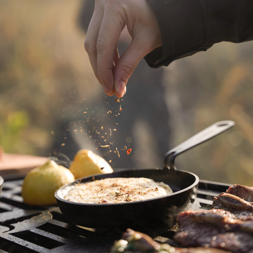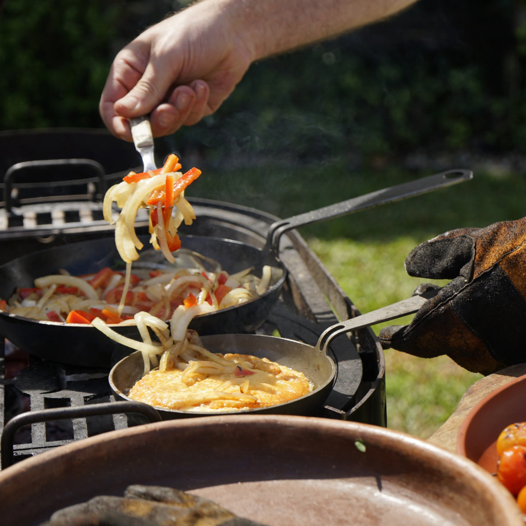Amplia superficie de cocción, ideal para múltiples preparaciones. Fabricada en hierro laminado en caliente de 2,5 mm, su rigidez y resistencia garantizan una cocción pareja y sin adherencias.